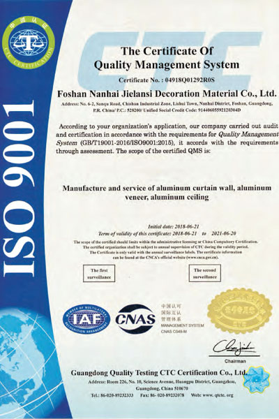 佛山杰蘭斯建材有限公司是一家專業生產室內外金屬鋁單板、鋁單板,天花鋁單板,氟碳鋁單板,木紋鋁單板,鋁單板加工廠等鋁單板生產廠家及鋁型材加工噴涂的現代化企業,是集設計、生產、銷售、安裝一條龍服務的集團公司。公司擁有先進的數控鈑金加工設備,配備了日本蘭氏全自動靜電氟碳涂線、數控沖床、數控剪板機、數控折彎機及全自動真空吸塑熱轉印機、數控熱壓機等多套先進的高精度的幕墻產品生產加工設備。